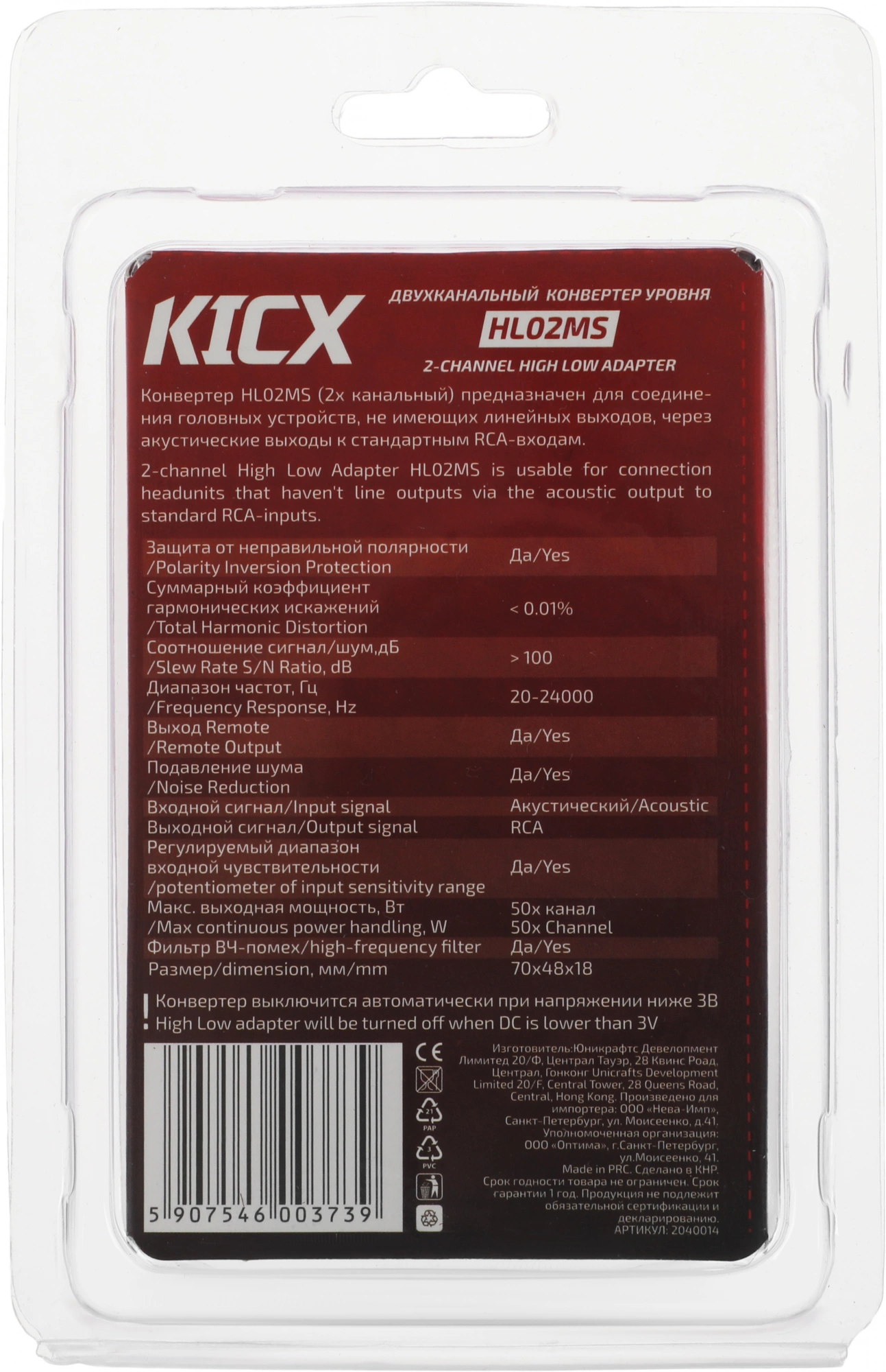 Конвертер Kicx HL02MS черный двухканальный (упак.:1шт)