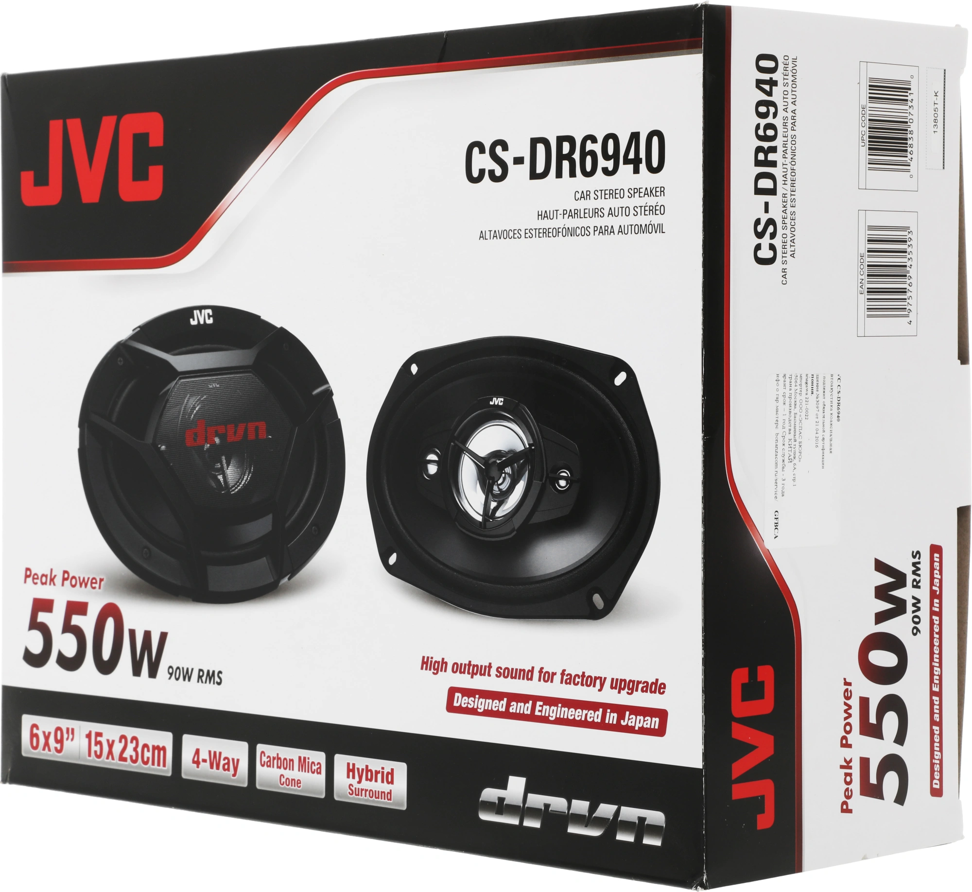 Колонки автомобильные JVC CS-DR6940 550Вт 89дБ 4Ом 15x23см (6x9дюйм) (ком.:2кол.) коаксиальные четырехполосные