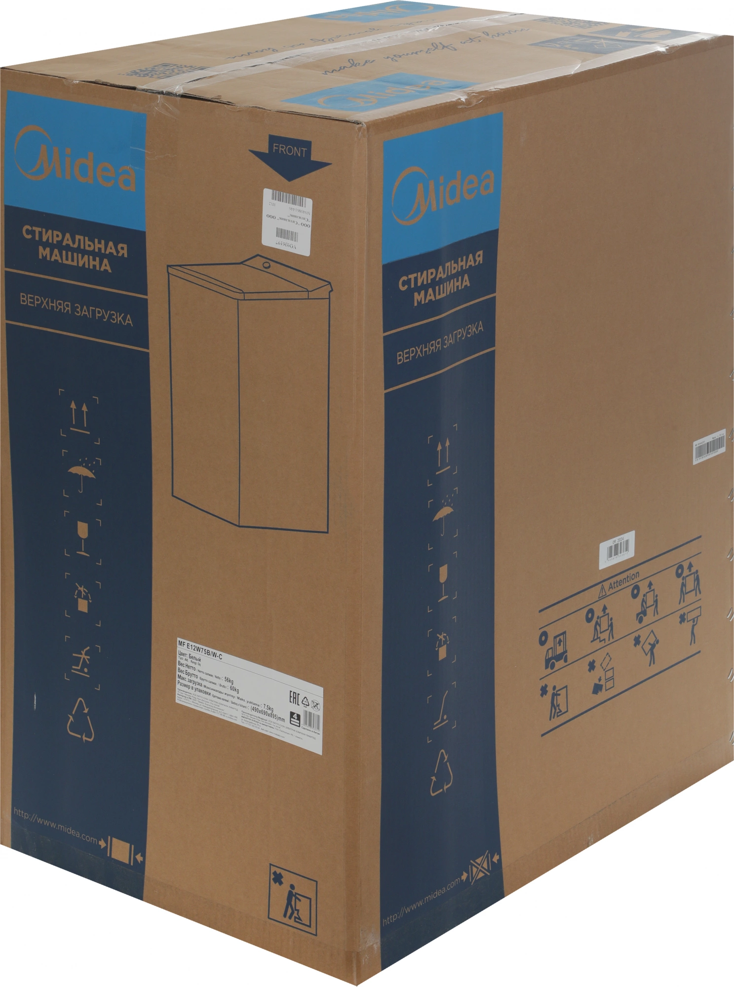 Стиральная машина Midea MFE12W75B/W-C класс: A загр.вертикальная макс.:7.5кг белый инвертер