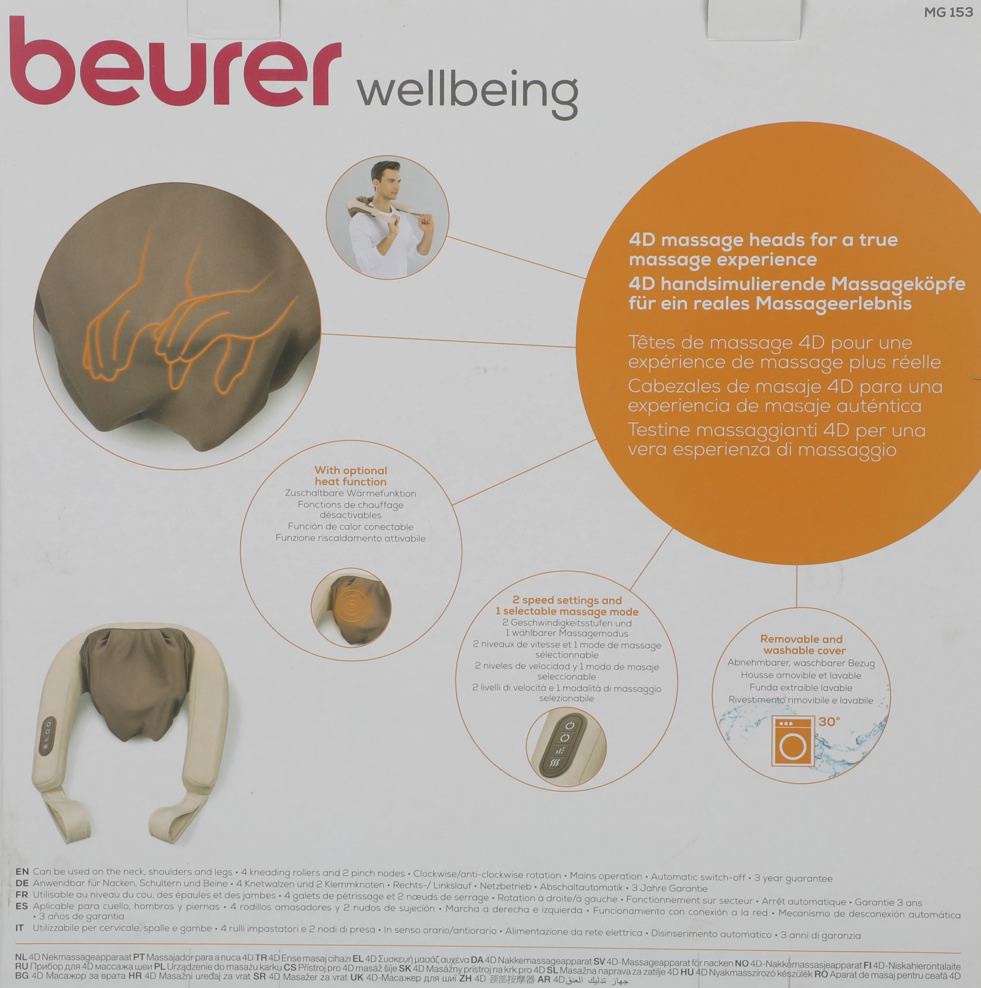 Благодаря прибору для массажа шеи Beurer MG 153 Вы приобретаете собственную массажную студию на дому. Имитирующие руки массажные головки 4D создают ощущение реального массажа. Функция успокаивающего тепла может быть включена в качестве опции. Благотворное действие после долгого дня.