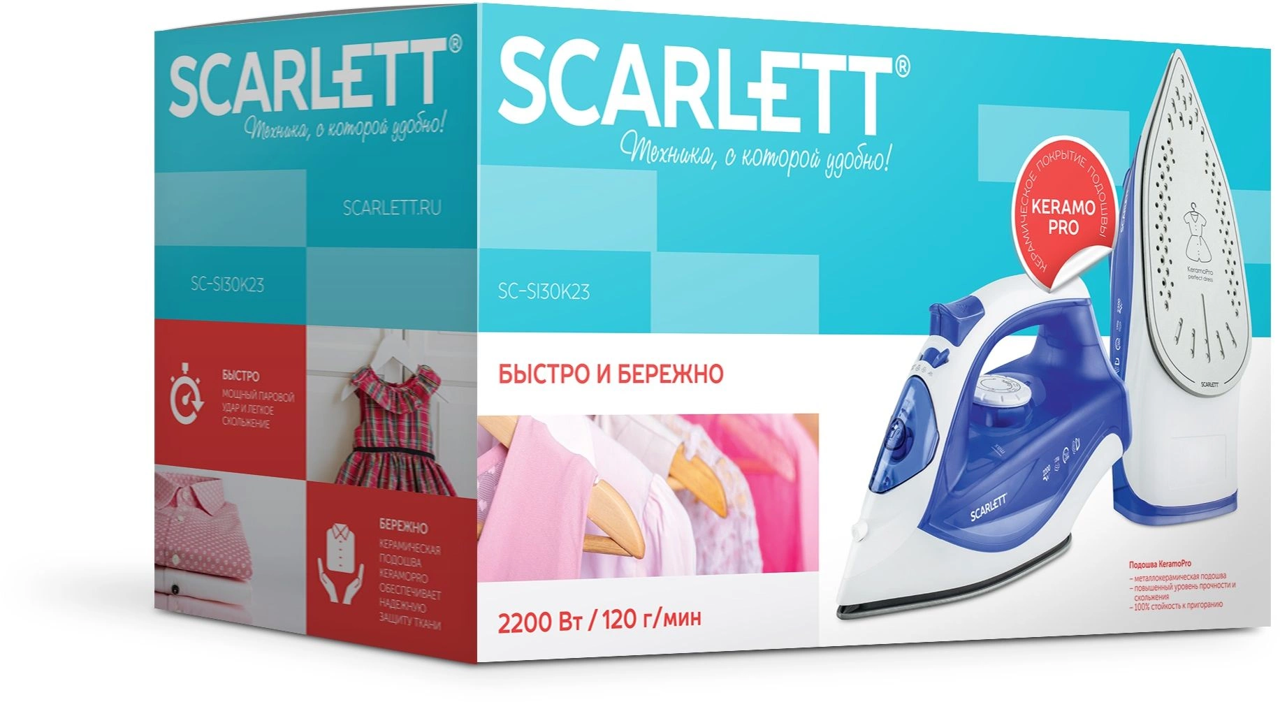 Утюг Scarlett SC-SI30K23 2200Вт белый/синий