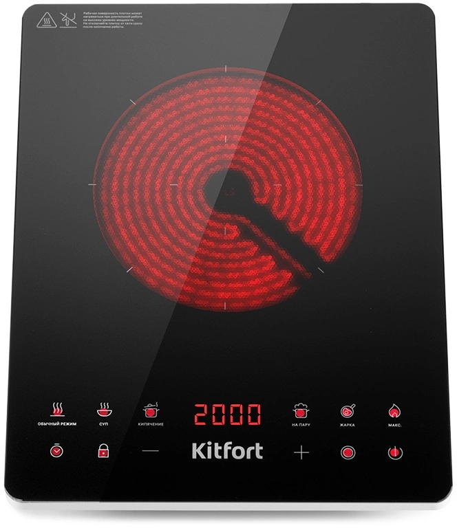 Плита Инфракрасная Kitfort КТ-140 черный/серебристый стеклокерамика (настольная)