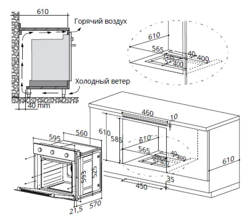 | Размеры для встраивания | 56.5x61x58.5см |