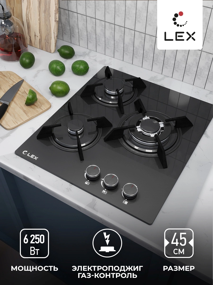 Газовая варочная поверхность Lex GVG 433 BBL черный