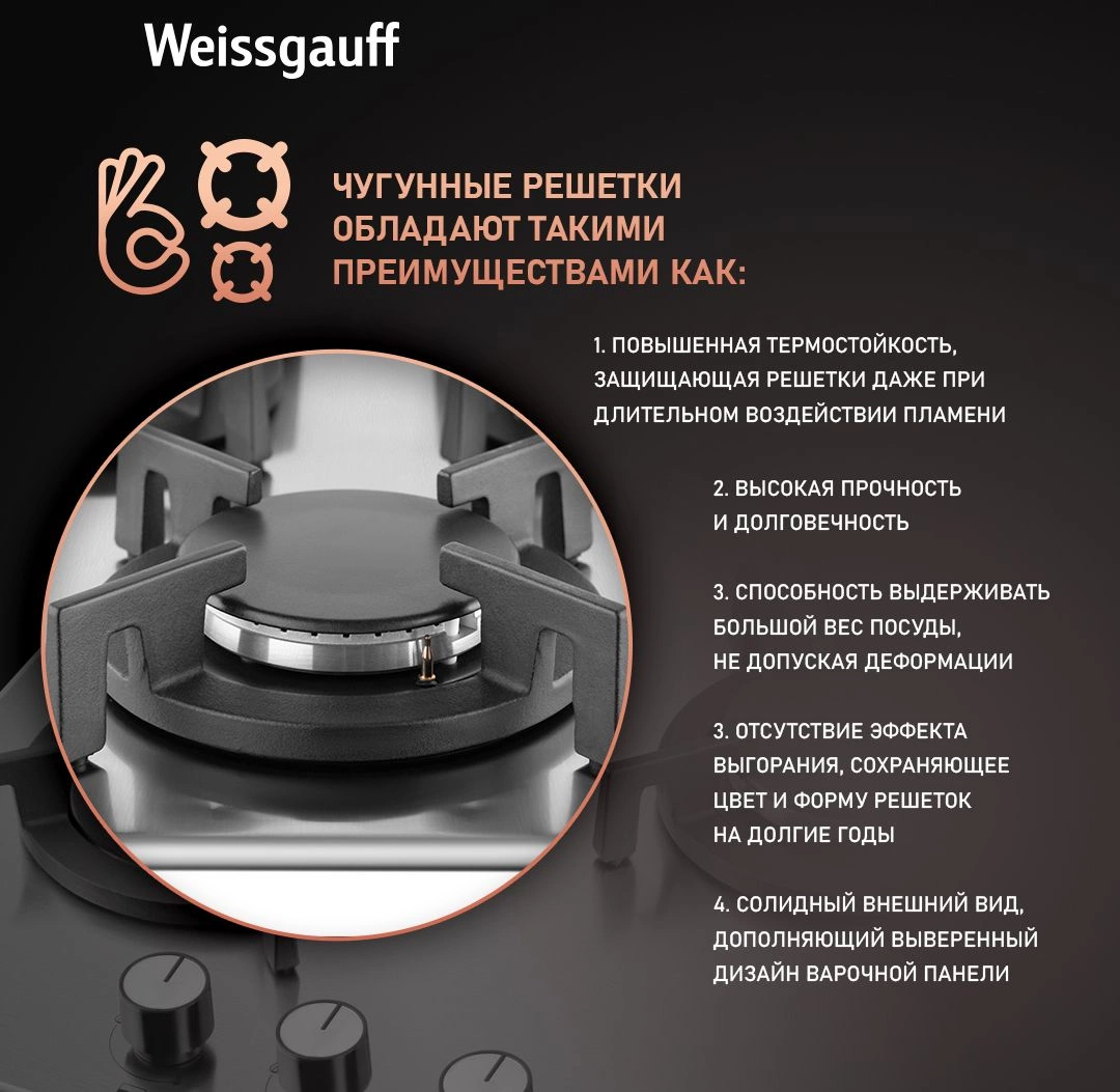 Газовая варочная поверхность Weissgauff HGG 430 XRV нержавеющая сталь