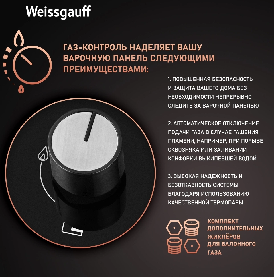 Газовая варочная поверхность Weissgauff HGG 451 BGV черный