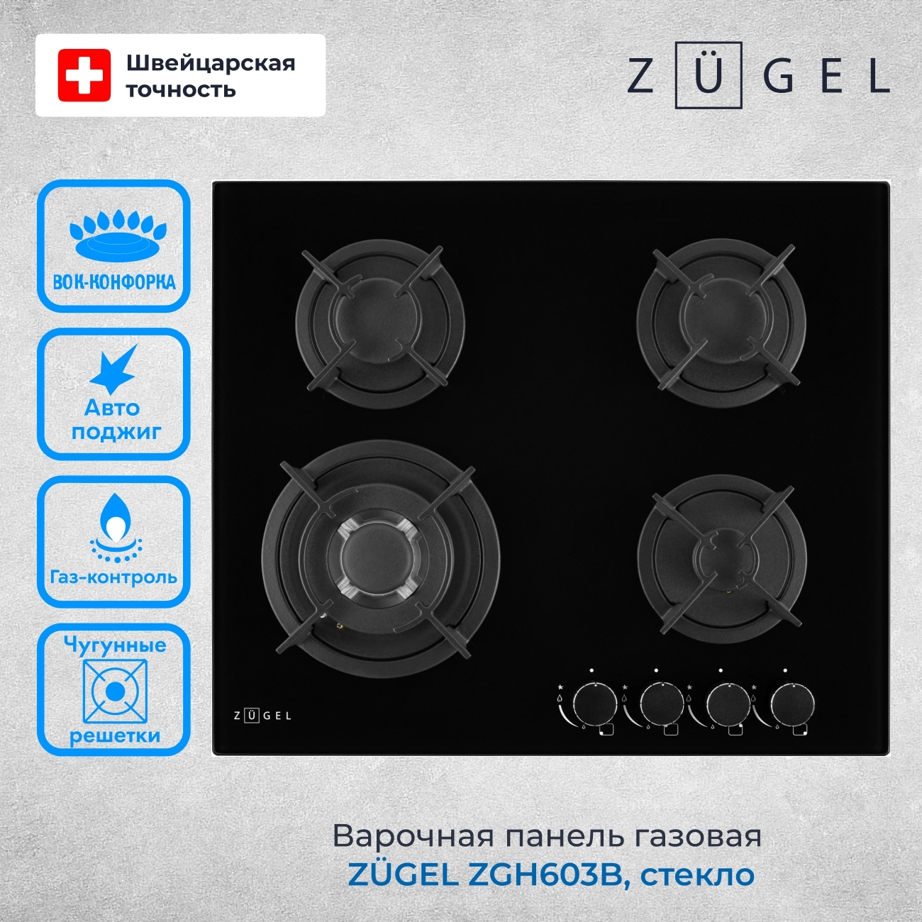 Газовая варочная поверхность Zugel ZGH603B черный