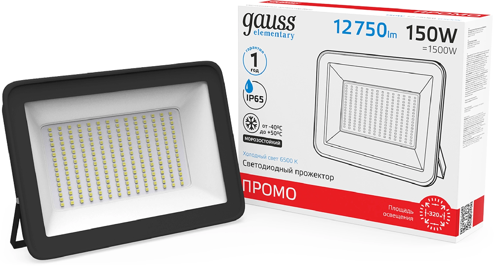 Прожектор уличный Gauss Elementary 613100150P светодиодный 150Втчерный