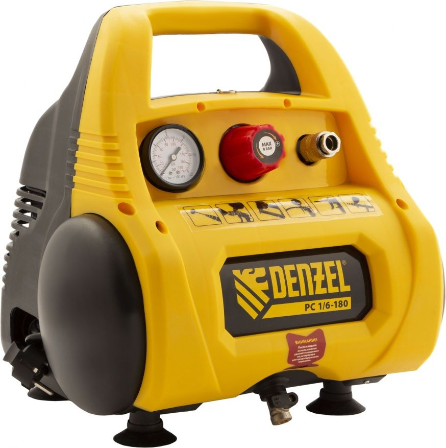 Компрессор поршневой Denzel РС 1/6-180 безмасляный 180л/мин 6л 1100Вт желтый/черный