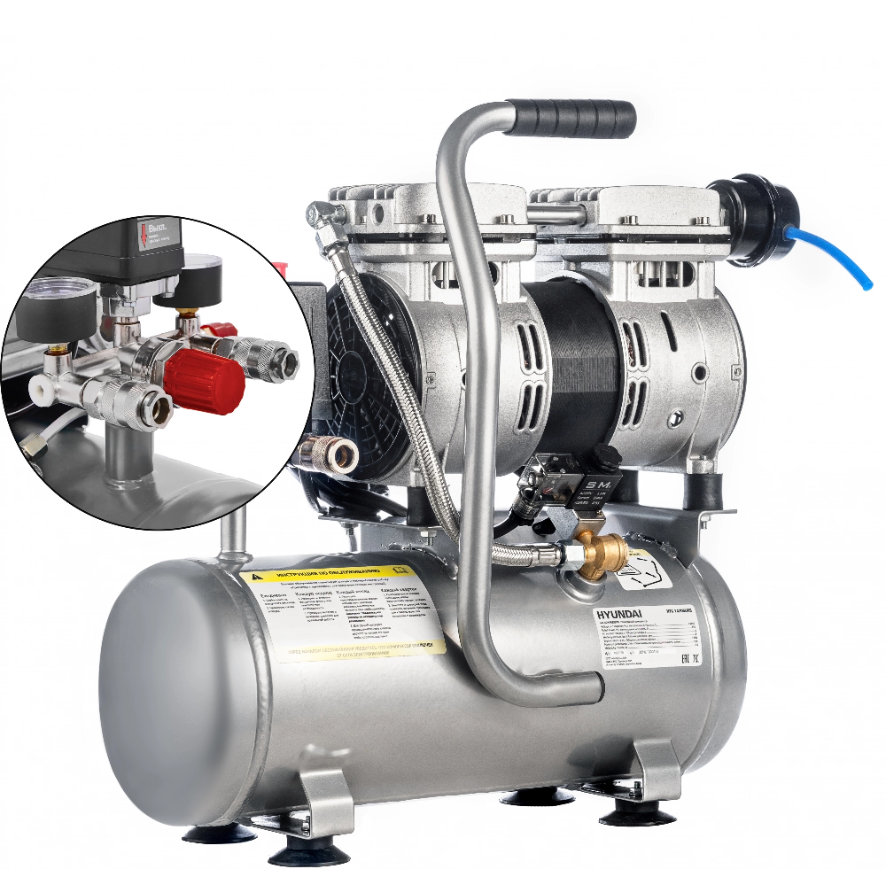 Компрессор поршневой Hyundai HYC 14206LMS безмасляный 140л/мин 6л 750Вт серебристый