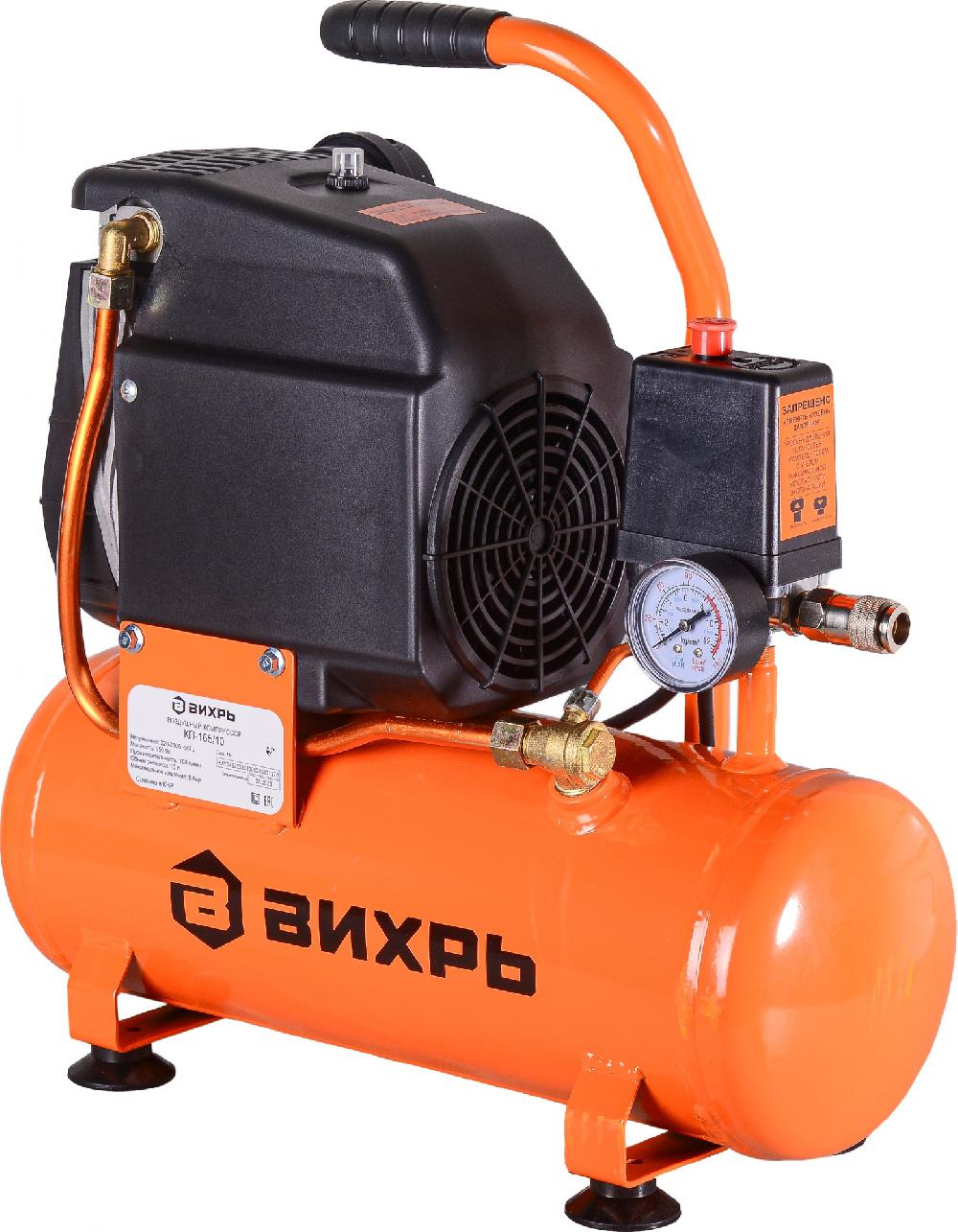 Компрессор поршневой Вихрь КП-165/10 безмасляный 165л/мин 10л 950Вт оранжевый/черный