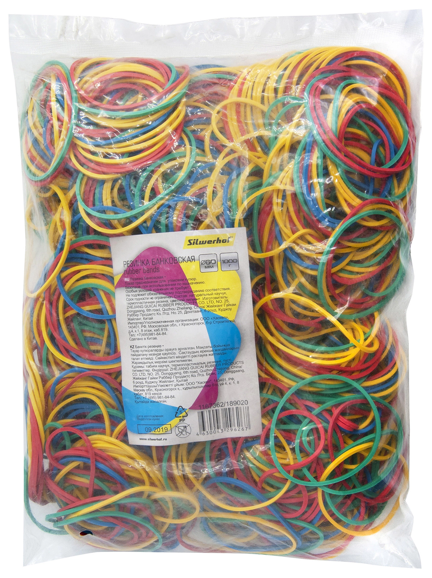 Резинки для купюр Silwerhof 189020 d=60мм 2мм 1000гр ассорти пластиковый пакет