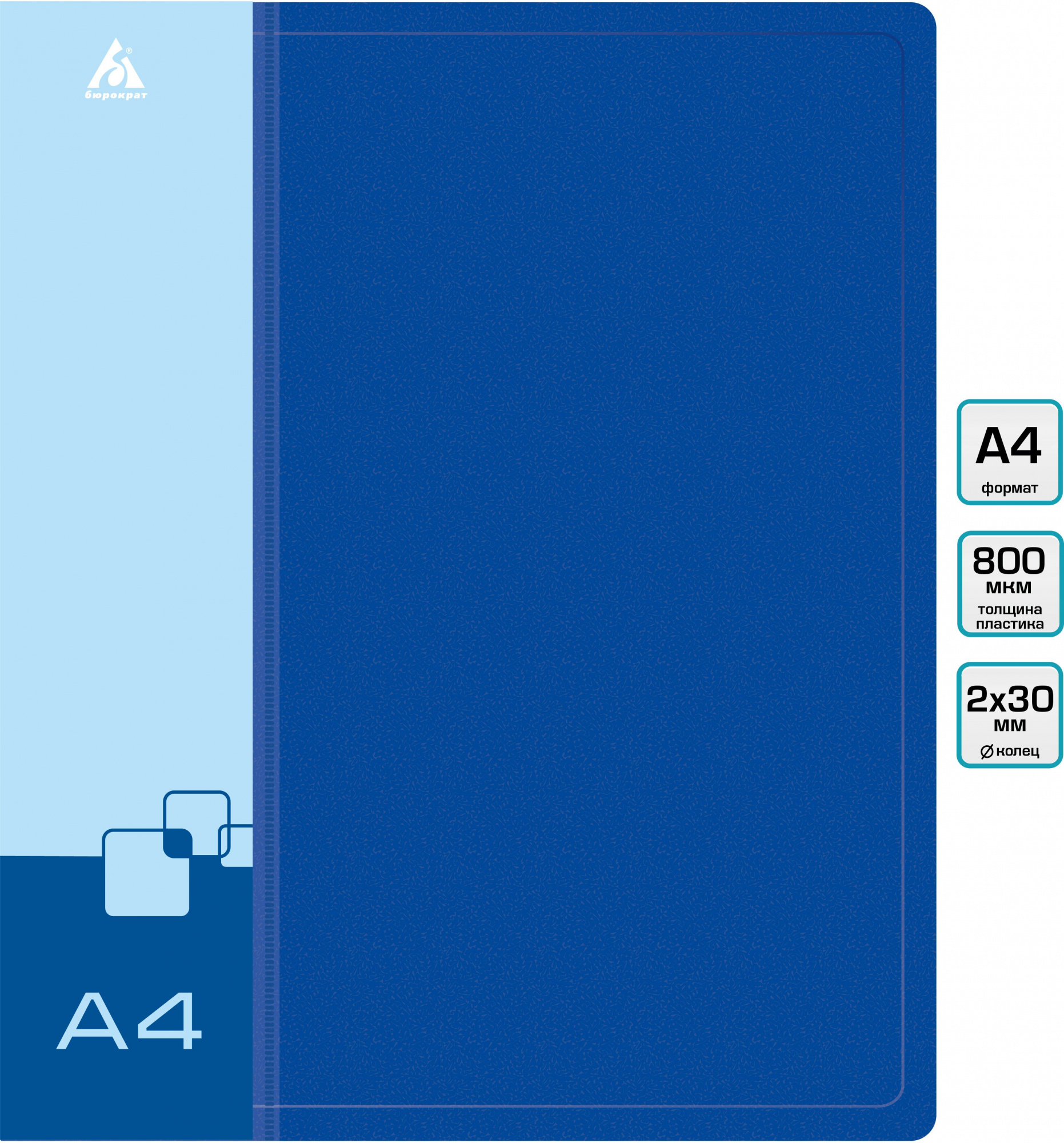 Папка на 2-х кольцах Бюрократ -0812/2RBLUE A4 пластик 0.8мм кор.40мм внутр. с вставкой синий
