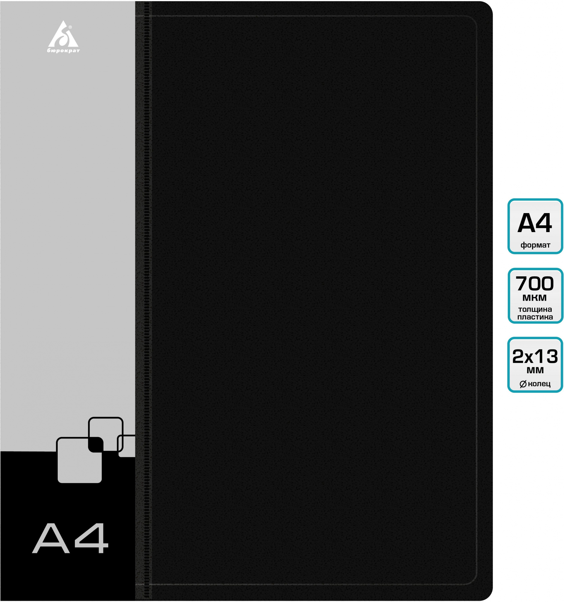 Папка на 2-х кольцах Бюрократ -0818/2RBLCK A4 пластик 0.7мм кор.18мм внутр. с вставкой черный