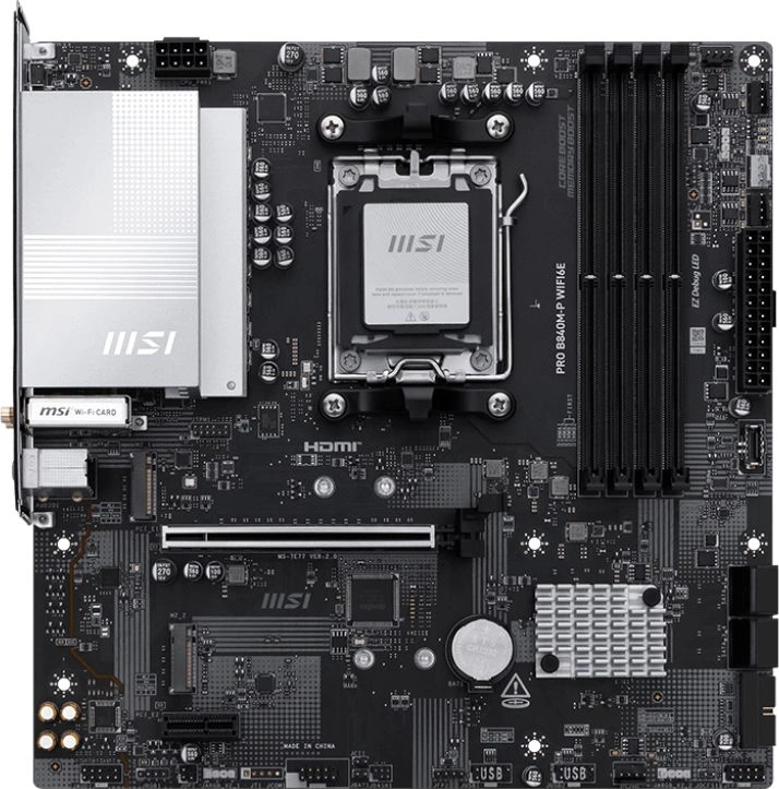 Материнская плата MSI PRO B840M-P WIFI6E SocketAM5 AMD B840 4xDDR5 ATX AC`97 8ch(7.1) 2.5Gg RAID+HDMI