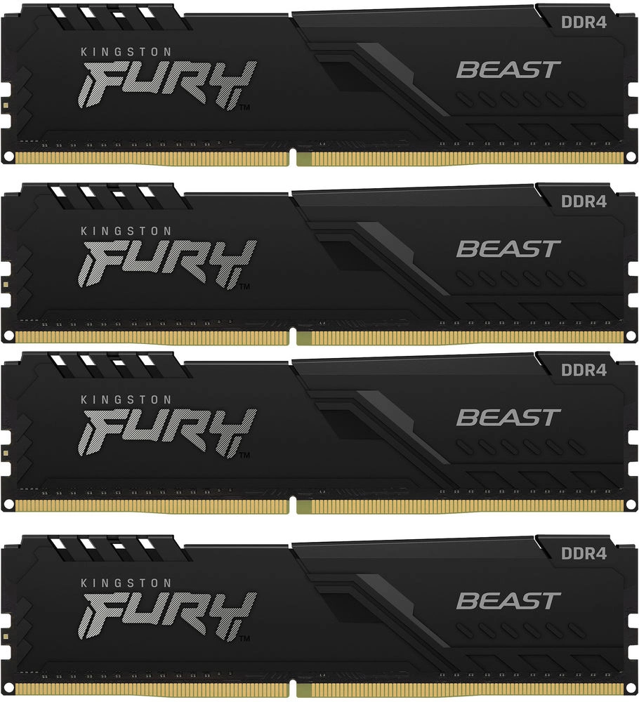 Память DDR4 4x32GB 3200MHz Kingston KF432C16BBK4/128 Fury Beast Black RTL Gaming PC4-25600 CL16 DIMM 288-pin 1.35В dual rank с радиатором Ret