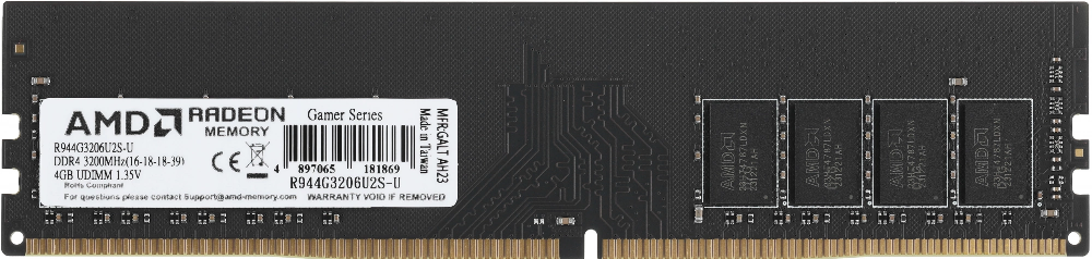 Память DDR4 4GB 3200MHz AMD R944G3206U2S-U Radeon R9 Gamer Series RTL Gaming PC4-25600 CL16 DIMM 288-pin 1.35В Ret