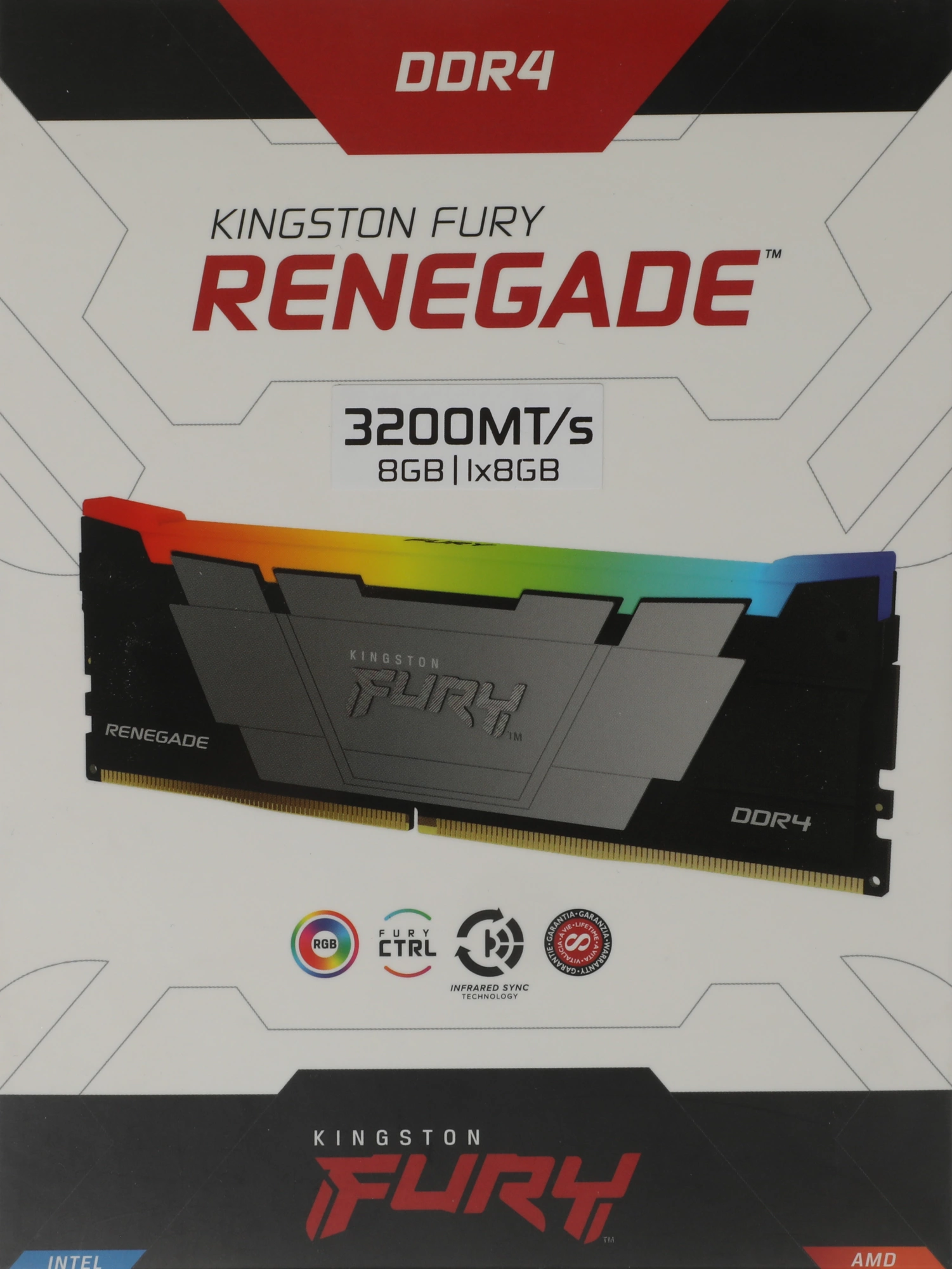 Память DDR4 8GB 3200MHz Kingston KF432C16RB2A/8 Fury Renegade RGB RTL Gaming PC4-25600 CL16 DIMM 288-pin 1.35В single rank с радиатором Ret