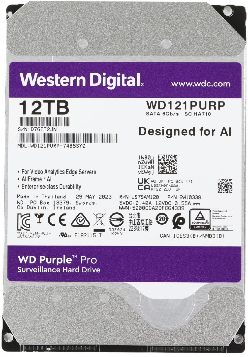 Жесткий диск WD SATA-III 12TB WD121PURP Surveillance Purple Pro (7200rpm) 256Mb 3.5"