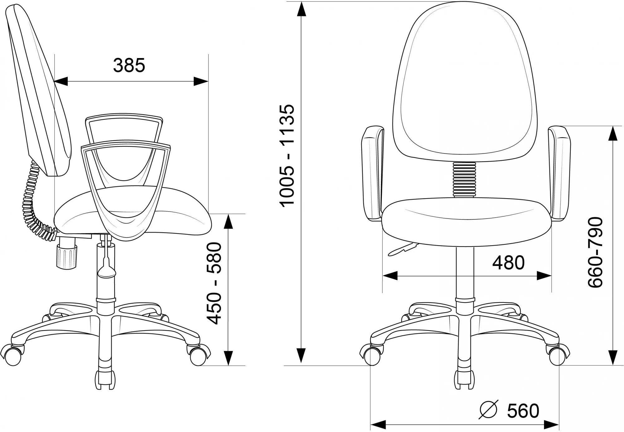 | Высота с подлокотниками MIN | 660 |