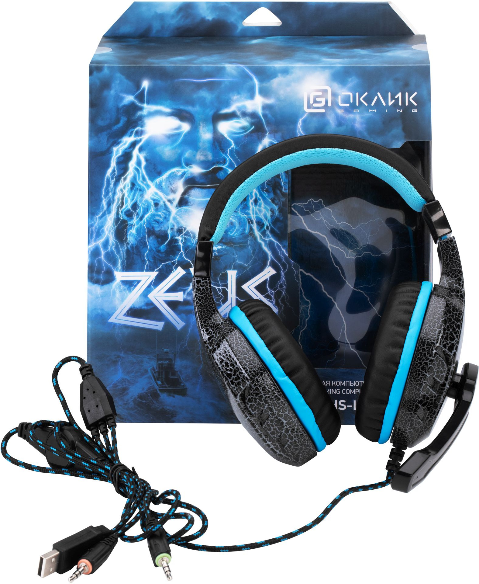 Наушники с микрофоном Оклик HS-L400G ZEUS черный/синий 2.2м мониторные оголовье (359480)