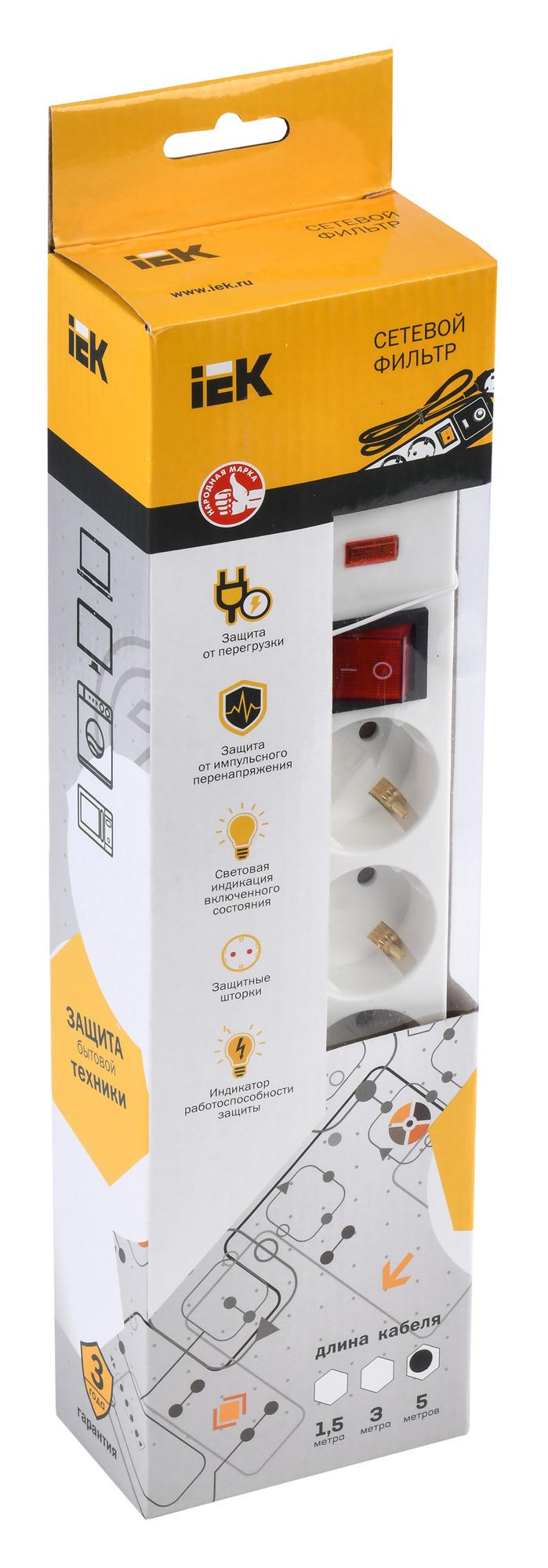 Сетевой фильтр IEK СФ-05К 5м (5 розеток) белый (коробка)