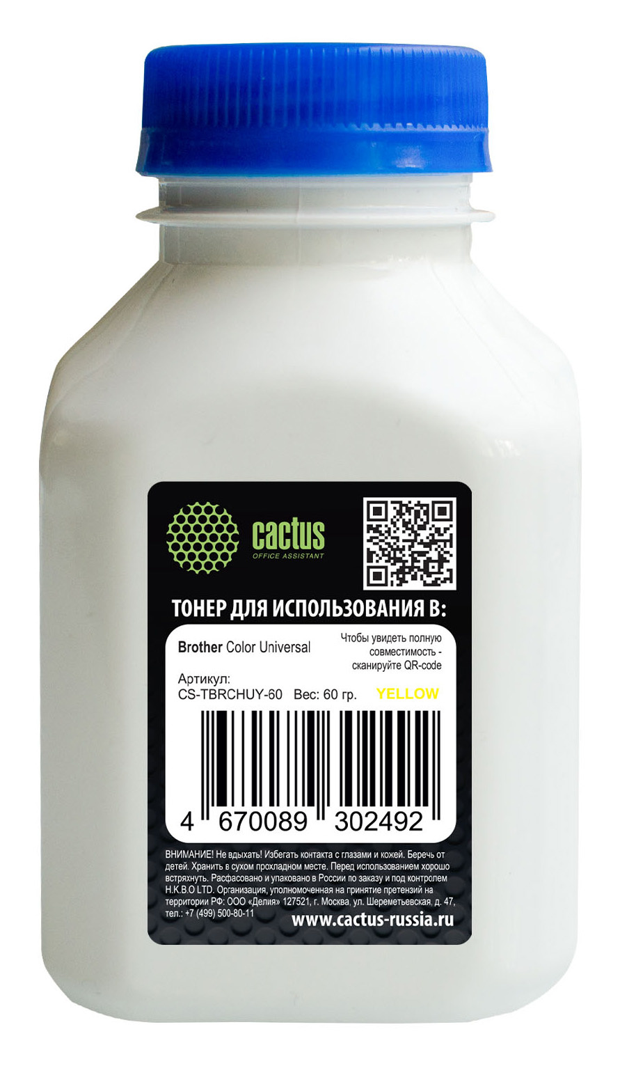 Тонер Cactus CS-TBRCHUY-60 желтый флакон 60гр. для принтера Brother Color Universal TN-230/241/213/217/320/421