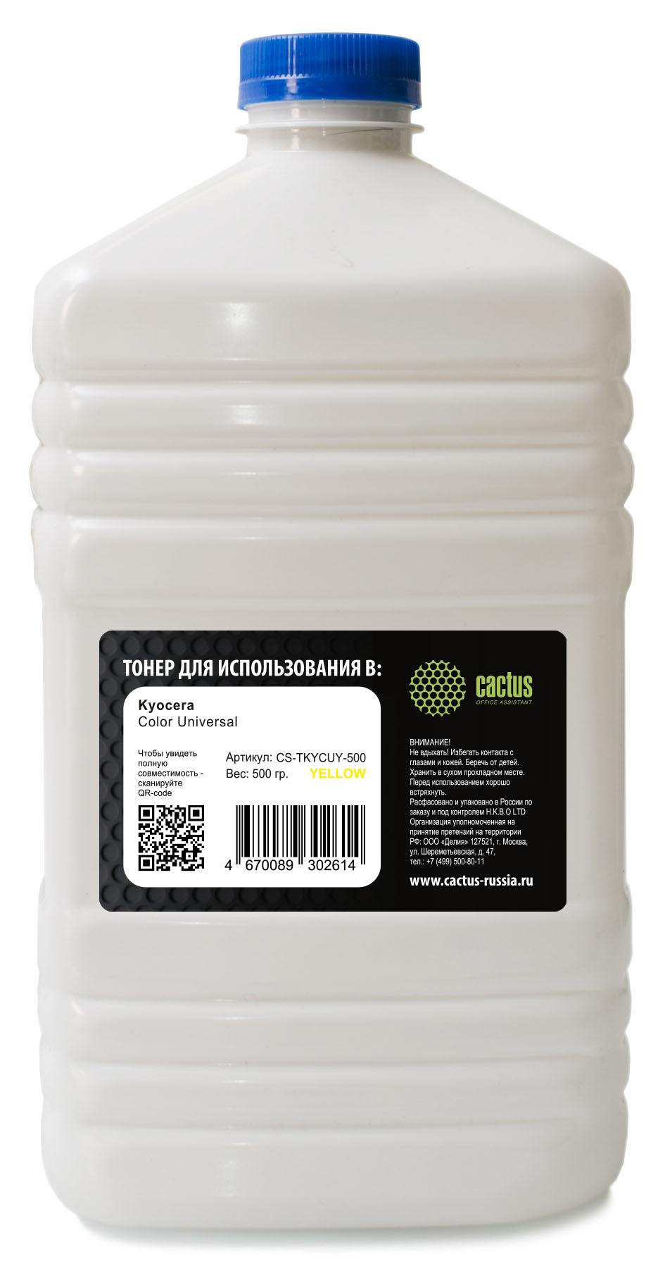 Тонер Cactus CS-TKYCUY-500 желтый флакон 500гр. для принтера Kyocera Color Universal TK-5хх/5270/8xx/8115/8305