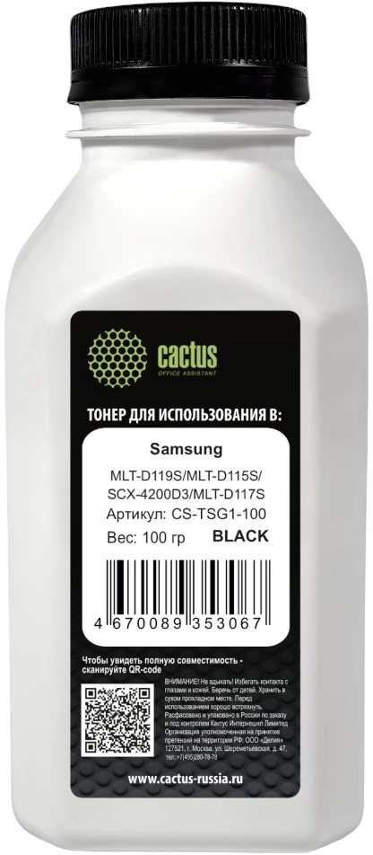 Тонер Cactus CS-TSG1-100 черный флакон 100гр. для принтера Samsung MLT-D119S/MLT-D115S/SCX-4200D3/MLT-D117S