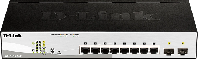 Коммутатор D-Link DGS-1210-08P DGS-1210-08P/G3A (L2) 8x1Гбит/с 2SFP 8PoE 65W настраиваемый
