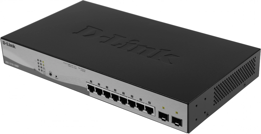 Коммутатор D-Link DGS-1210-10MP/F3A (L2) 8x1Гбит/с 2SFP 8PoE 130W настраиваемый